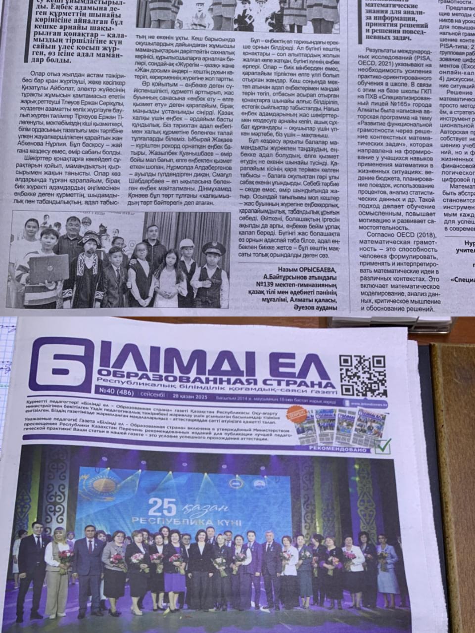 Қазақстан Президенті Қасым-Жомарт Тоқаев 2025 жылды «Жұмысшы мамандықтар жылы» деп жариялап, осыған байланысты мектеп-гиназиямызда қазан айында жұмысшы мамандық иелерімен кездесу өткізіліп, кездесудің қортындысын мектеп-гимназиямыздың қазақ тілі және әдебиеті пәні мұғалімі Орысбаева Назымның "Білімді ел" газетінде "Тіршіліктің тамыры - еңбек адамы" тақырыбында мақаласы жарық көрді.