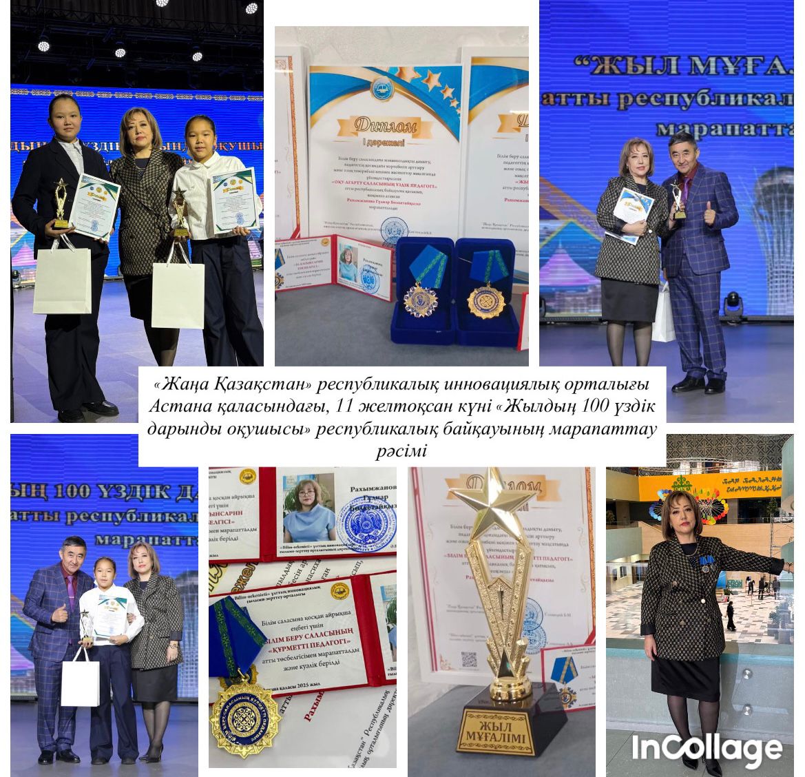 "Жаңа Қазақстан" иновациялық орталығы Астана қаласындағы 11 желтоқсанда өткен "Жылдың 100 дарынды оқушысы" республикалық байқауының марапаттау рәсіміне мектебіміздің ағылшын пәні мұғалімі Рақымжанова Гүлнар , 6 "В" сынып оқушылары Даулетқали Айзере және Шайых Айяулым қатысып 1 дәрежелі дипломмен және "Дарынды оқушы" төсбелгісімен марапатталды. Жетекшісі ағылшын пәні мұғалімі Рақымжанова Гүлнар.