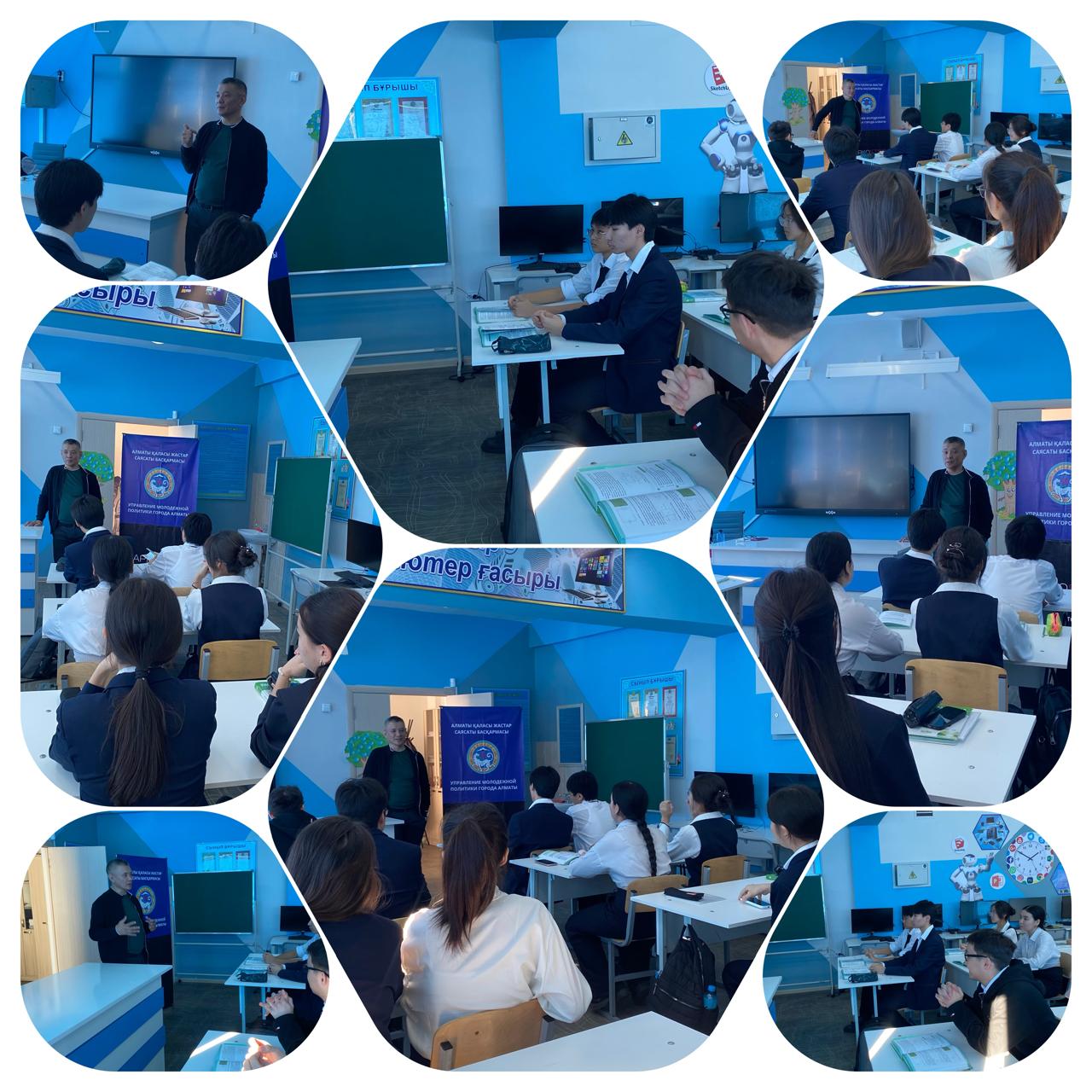 Алматы қаласы Әуезов ауданы № 139 мектеп-гимназияда 18.11.2024 ж. «Наркостоп 2024 Сybersafe» жобасы аясында интернет кеңістігінде синтетикалық есірткінің таралуының алдын алу бойынша Әлеуметтік қызметкер Тәжібаев Ерлан дәріс өткізді.