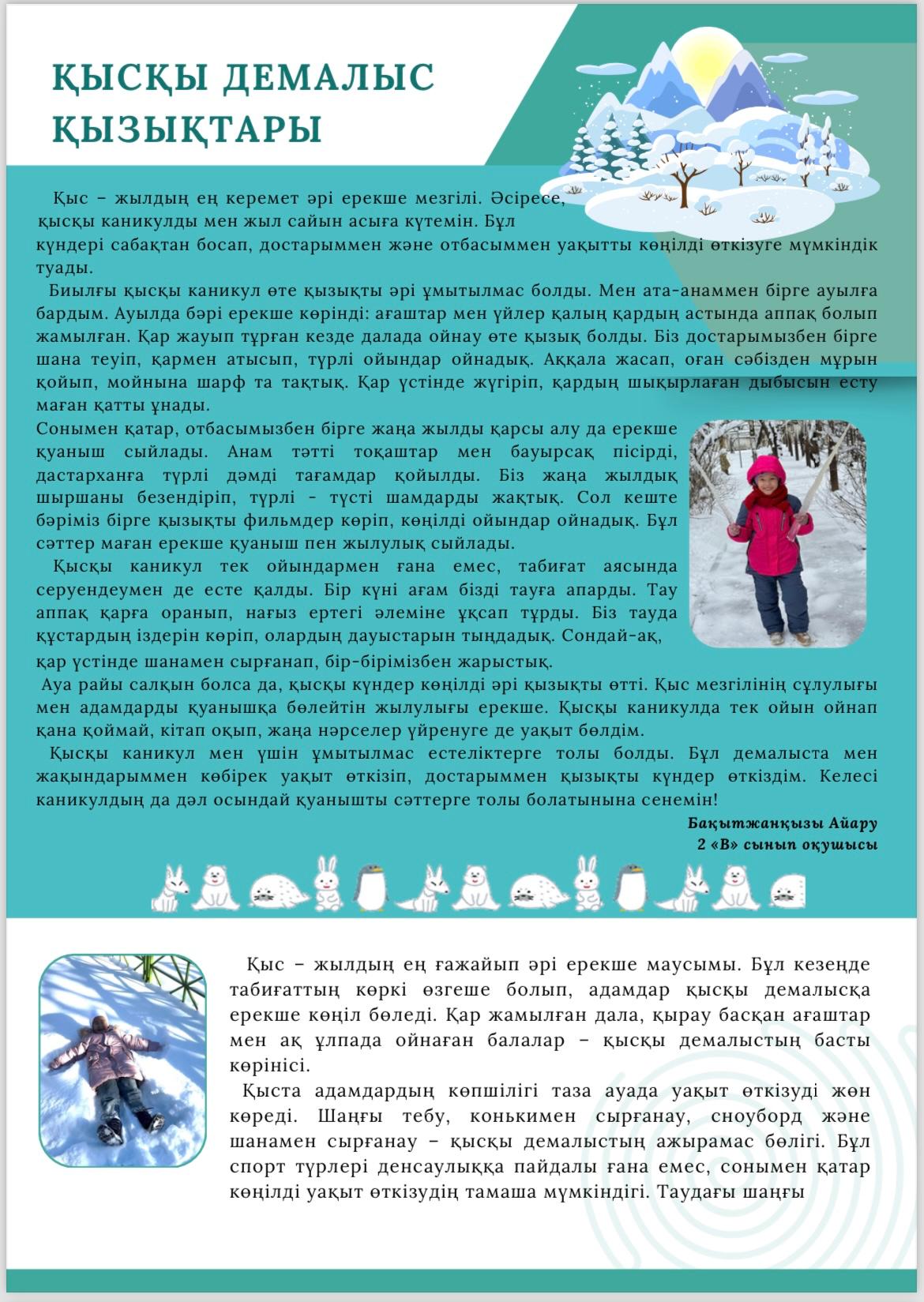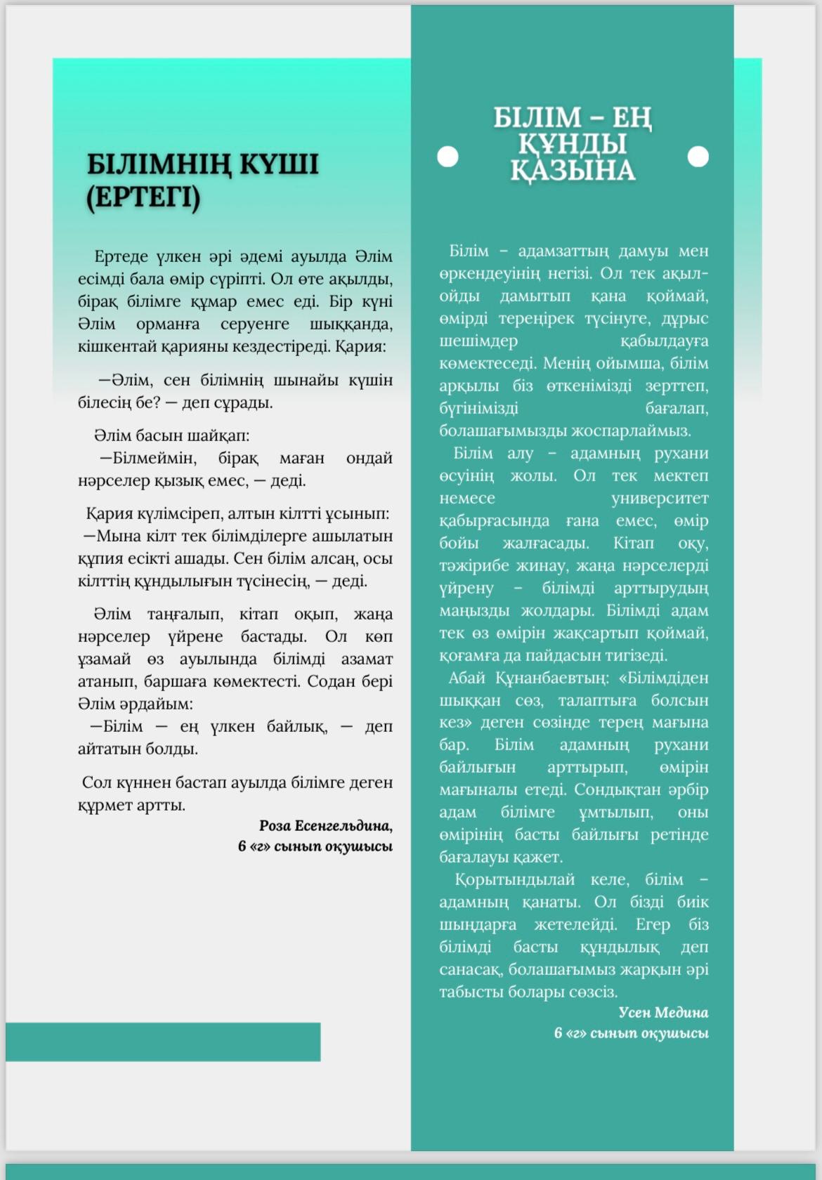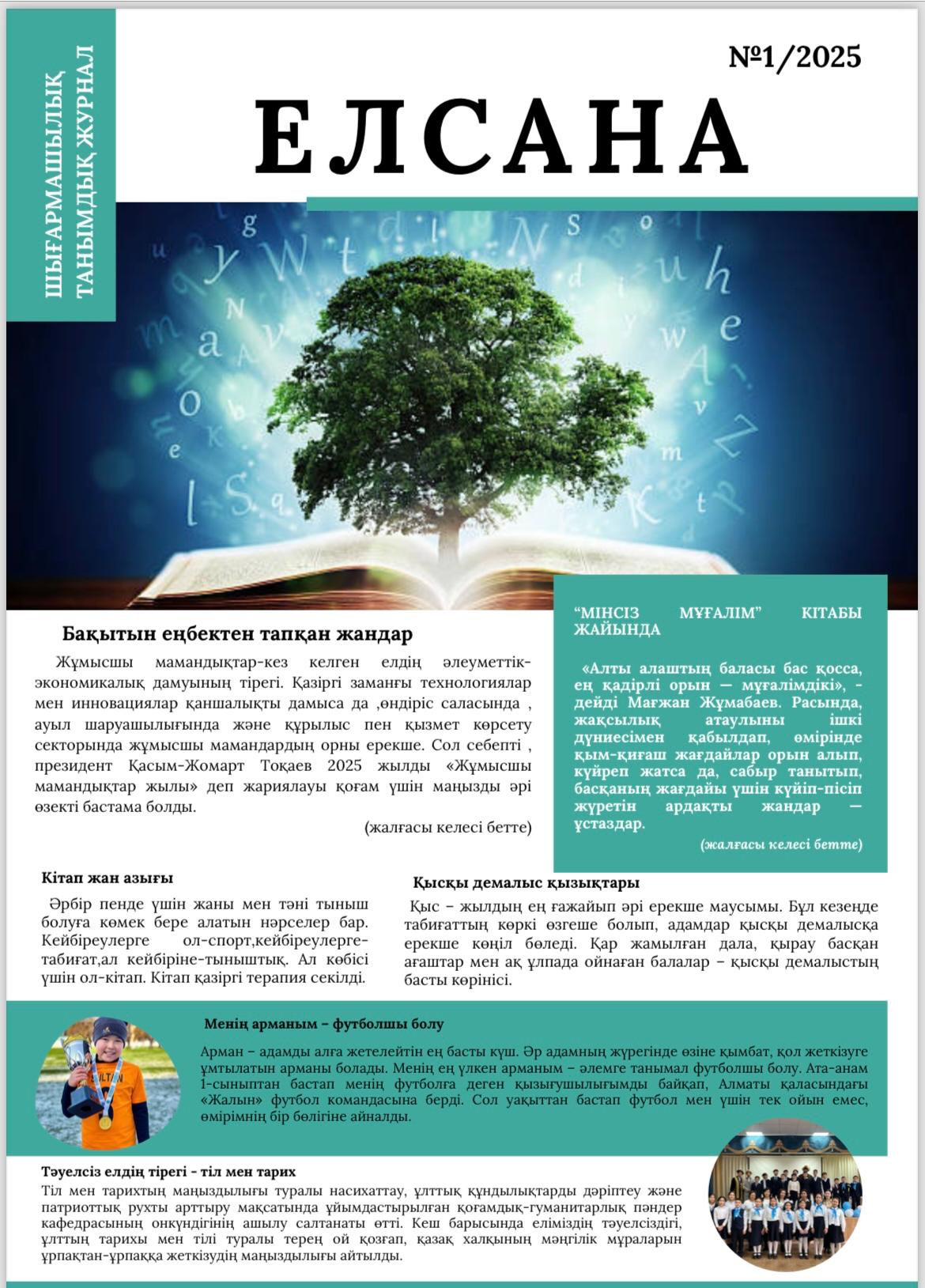 Әр ай сайын мектебімізде шығарылатын "Елсана" газетінің қаңтар айында жарық көрген кезекті саны. Сіз де өз мақалаңызды жариялай аласыз.