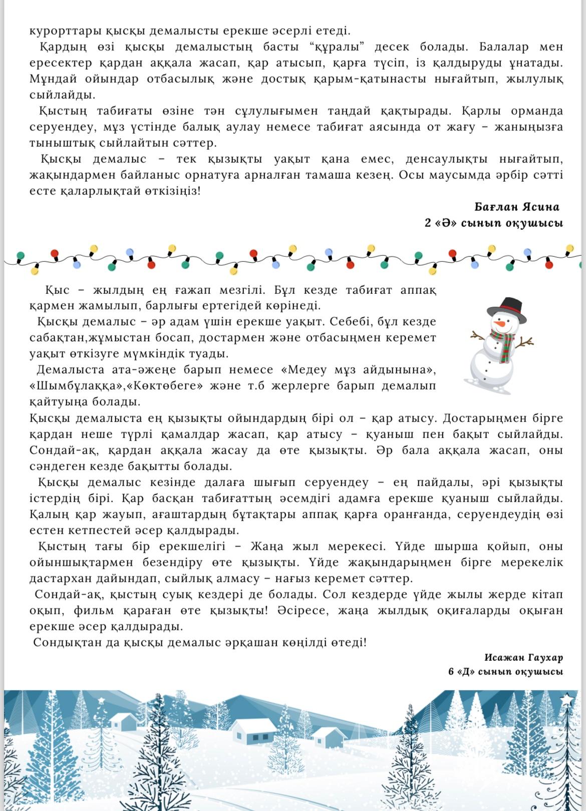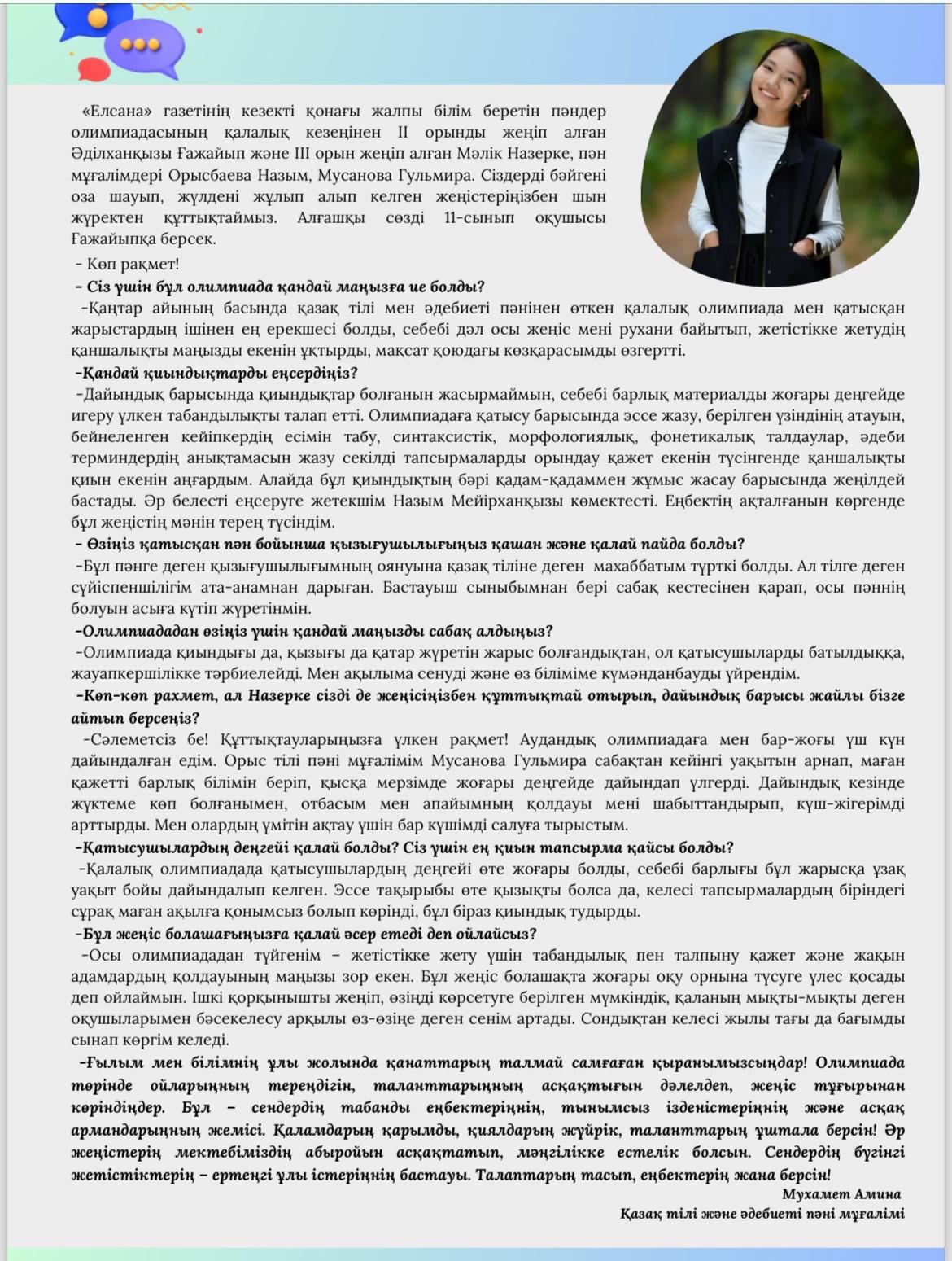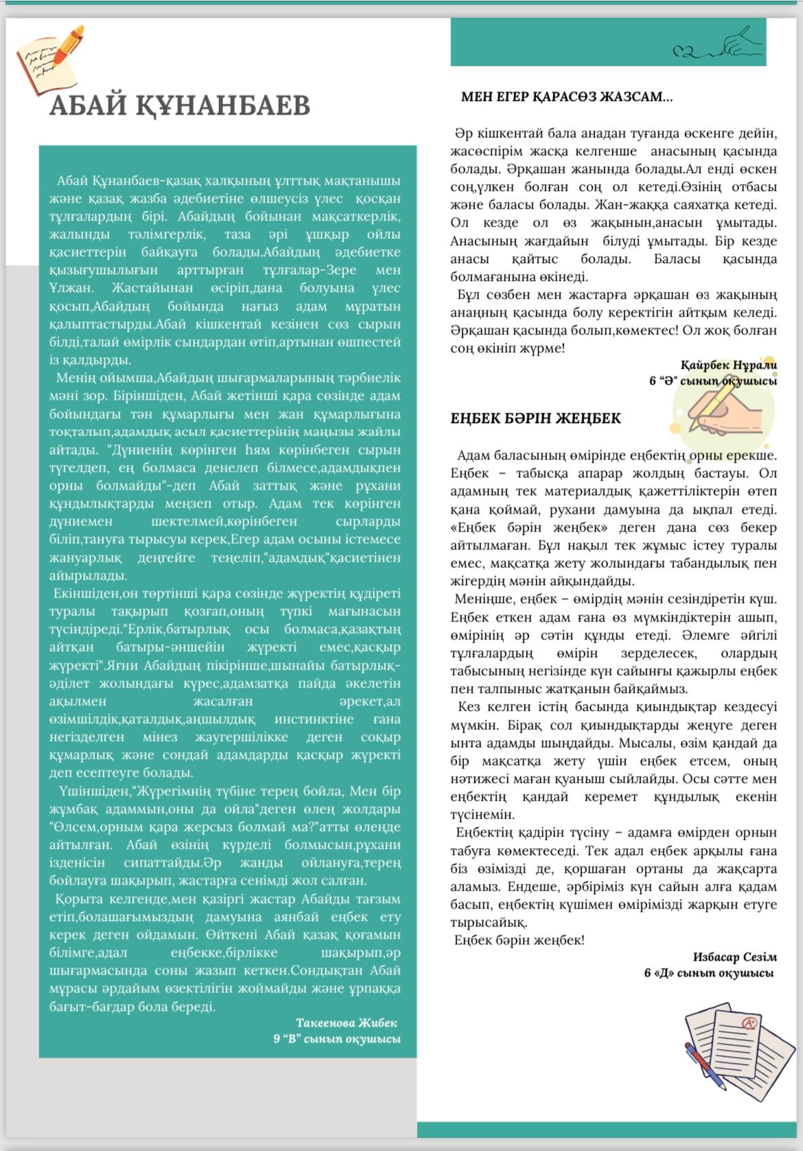 Әр ай сайын мектебімізде шығарылатын "Елсана" газетінің қаңтар айында жарық көрген кезекті саны. Сіз де өз мақалаңызды жариялай аласыз.