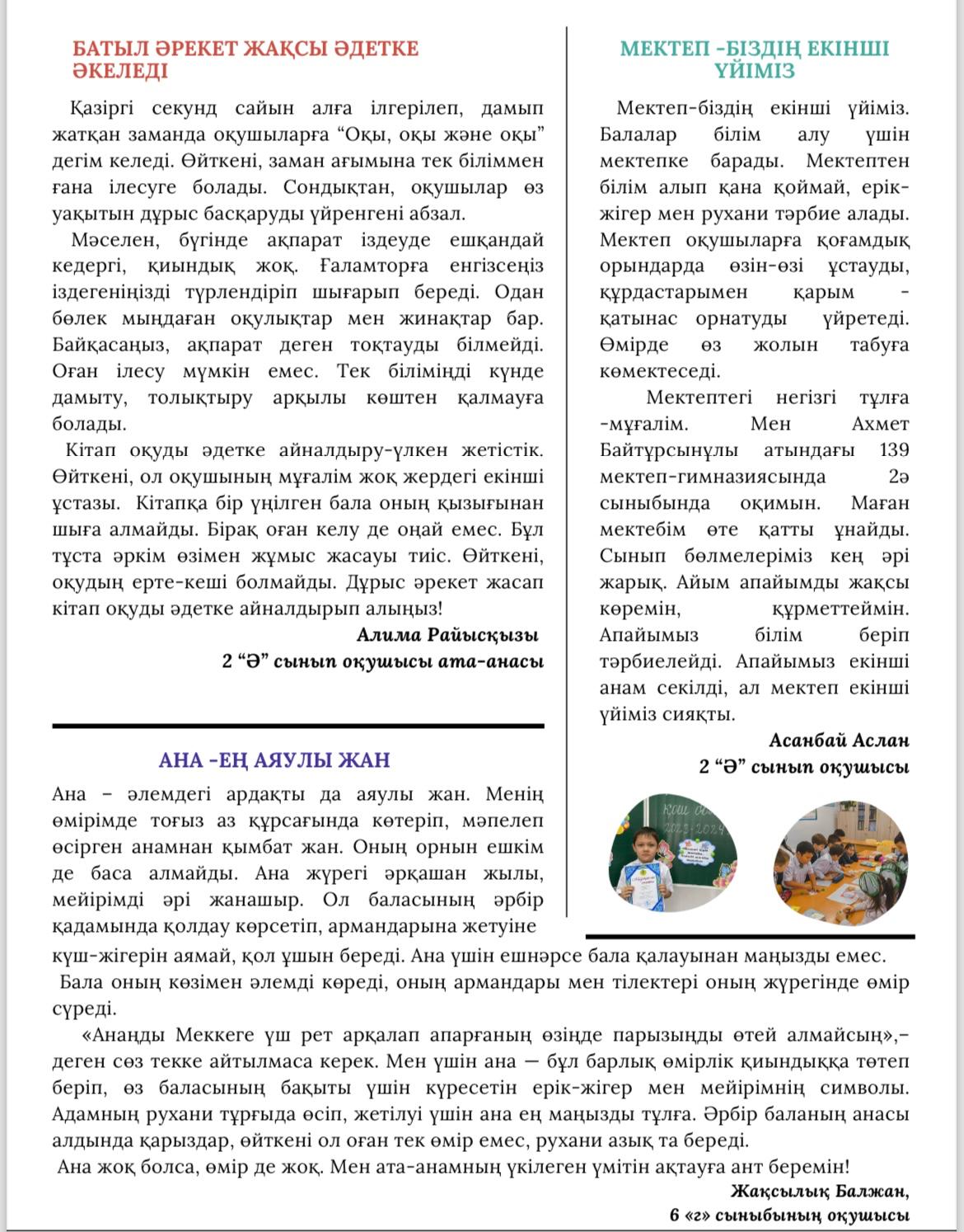 139 мектеп » Ақпарат » Әр ай сайын мектебімізде шығарылатын "Елсана" газетінің қаңтар айында жарық көрген кезекті саны. Сіз де өз мақалаңызды жариялай аласыз.