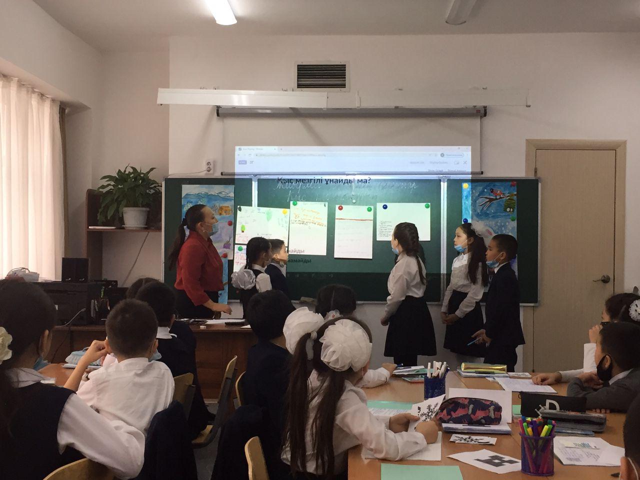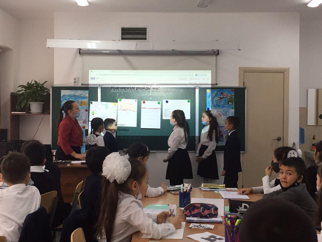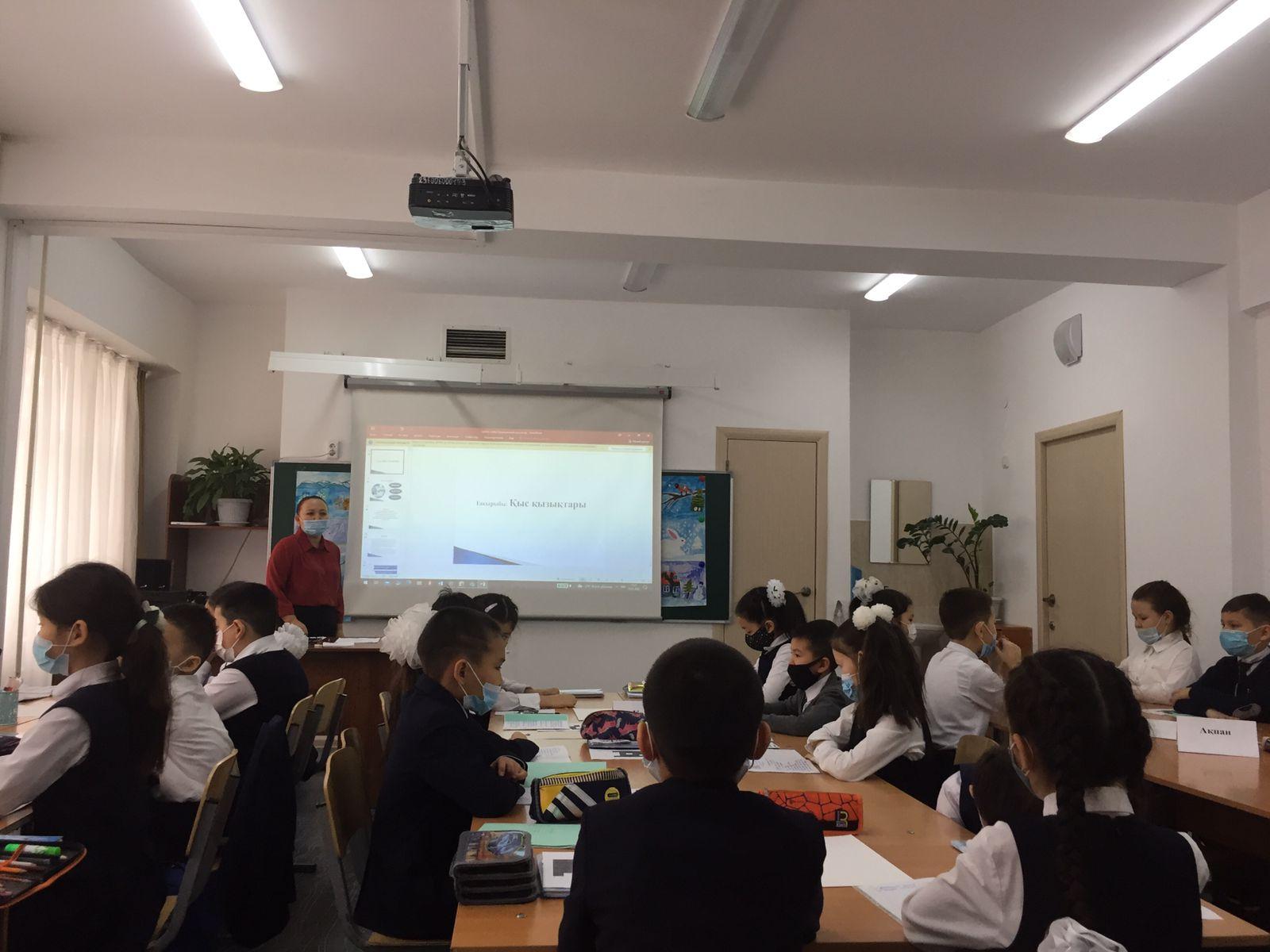 Оқушылардың қыс мезгілі туралы түсініктерін кеңейту, ойын толық жеткізе білуге үйрету, табиғатты аялау, әсемдікті сезініп көре білуге тәрбиелеу және қысқы ойындар, оларға қажетті құралдар туралы білімдерін кеңейту мақсатында 3 "Г" сыныбында "Қыс қызықтары" тақырыбында ашық тәрбие сағаты өтті. Сынып жетекшісі Ж.Қыдырбекова.