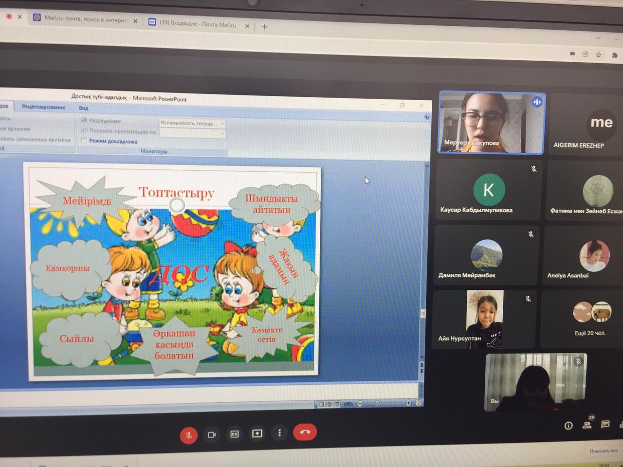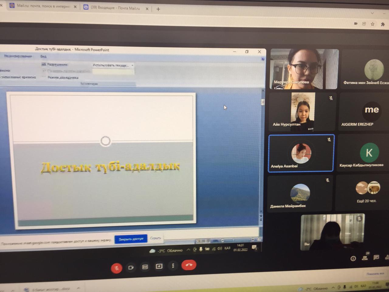 Достық туралы жақсы пікір қалыптастыру, балалардың достық ой-пікірлерін дамыту, достықты қадірлей білуге тәрбиелеу мақсатында "Достық түбі-адалдық" тақырыбында 5 "А" сыныбында ашық тәрбие сағаты жоғары деңгейде өтті. Сынып жетекшісі: М.Сакупова