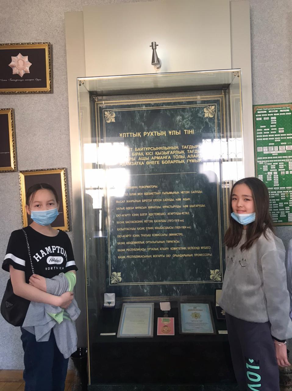 А.Байтұрсынұлының 150 жылдығына орай оқушылардың танымдық көзқарастарын дамыту мақсатында А.Байтұрсынұлының мұражай үйіне 5 "Б", "В" сыныптары сынып жетекшілерімен бірге саяхат жасады. Оқушылар өте керемет әсер алғандарын айтып, А.Байтұрсыновтың өміріне байланысты мұрағаттық материалдар, қолжазба, фотосуреттер, сирек кездесетін кітаптармен танысып келді.