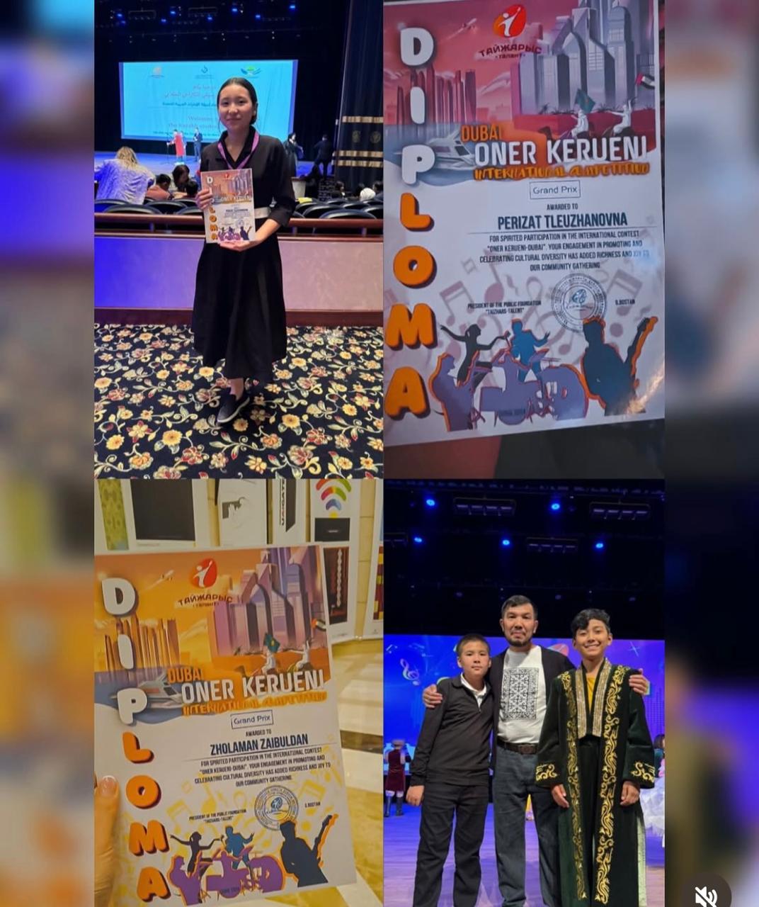 Дубай қаласында өткен Халықаралық "Өнер керуені" байқауынан мектебіміздің 7 "Г" сынып оқушысы Тлеужанқызы Перизат, 6 "Д" сынып оқушылары Зайбулдан Жоламан, Есен Нұрлыбек "Көркем сөз" номинациясы бойынша қатысып Гран При жеңімпаздары атанды. Мектебімізде драма жетекшісі болған Болат Мамытбек ағайға алғыс білдіреміз. Еңбегіңіз жемісті болсын!