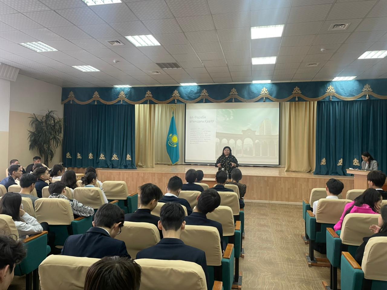 Ғылыми-жаратылыстану пәндерінің онкүндігіне орай 10-11 сынып оқушыларымен "Ғалым болам десеңіз..." атты тақырыпта жас ғалымдармен кездесу өтті.