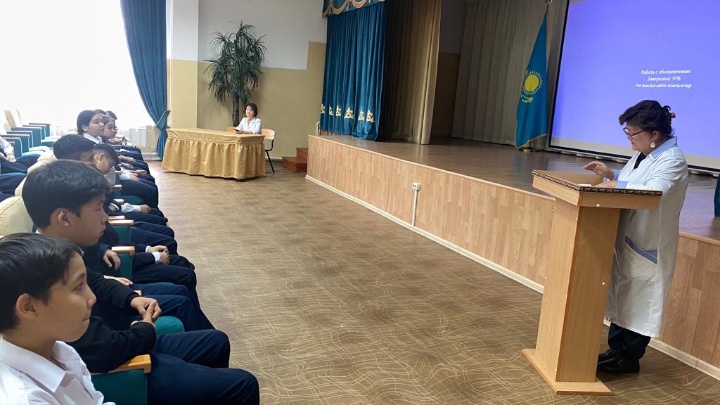 26 қазан күні мектеп-гимназияда медицина қызметкерлерімен кездесу кеші өтті.Кездесу барысында оқушыларға «Салауатты өмір салты (СӨС) — бұл ең әуелі денсаулықты сақтауға және нығайтуға бағытталған сауықтыру жолындағы белсенді іс-әрекет. Өмір Адамның өмір салты өздігінен қалыптаспайды, ал салауатты өмір салты өмір сүру барысында мақсатты түрде қалыптасады. Қазіргі мәліметтер бойынша денсаулық 53-55%- ға салауатты өмір салтына тәуелді болады. Бұдан салауатты өмір салтын ұстанудың қаншалықты маңызды екендігі айқын байқауға болады». Медицина – ғылым мен тәжірибе арқылы ауру-сырқаттарды емдеу, оны алдын алу, адам денсаулығын сақтау мен шама - шарқын жоғарылату, өмір сүру ұзақтығын арттыру секілді ықпалдар негізінде жасалатын дәрігерлік көмек.