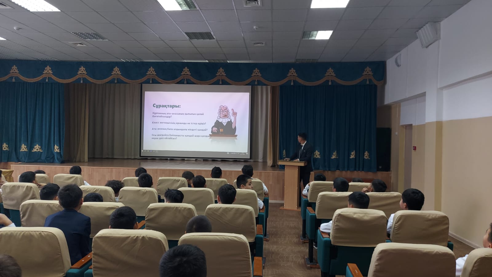 5-11 сынып оқушылары арасында жас ерекшеліктеріне қарай "Жас өспірімдердің құқығын қорғау және қылмыстың алдын алу" тақырыбында ұлдар жиналысы өтті.