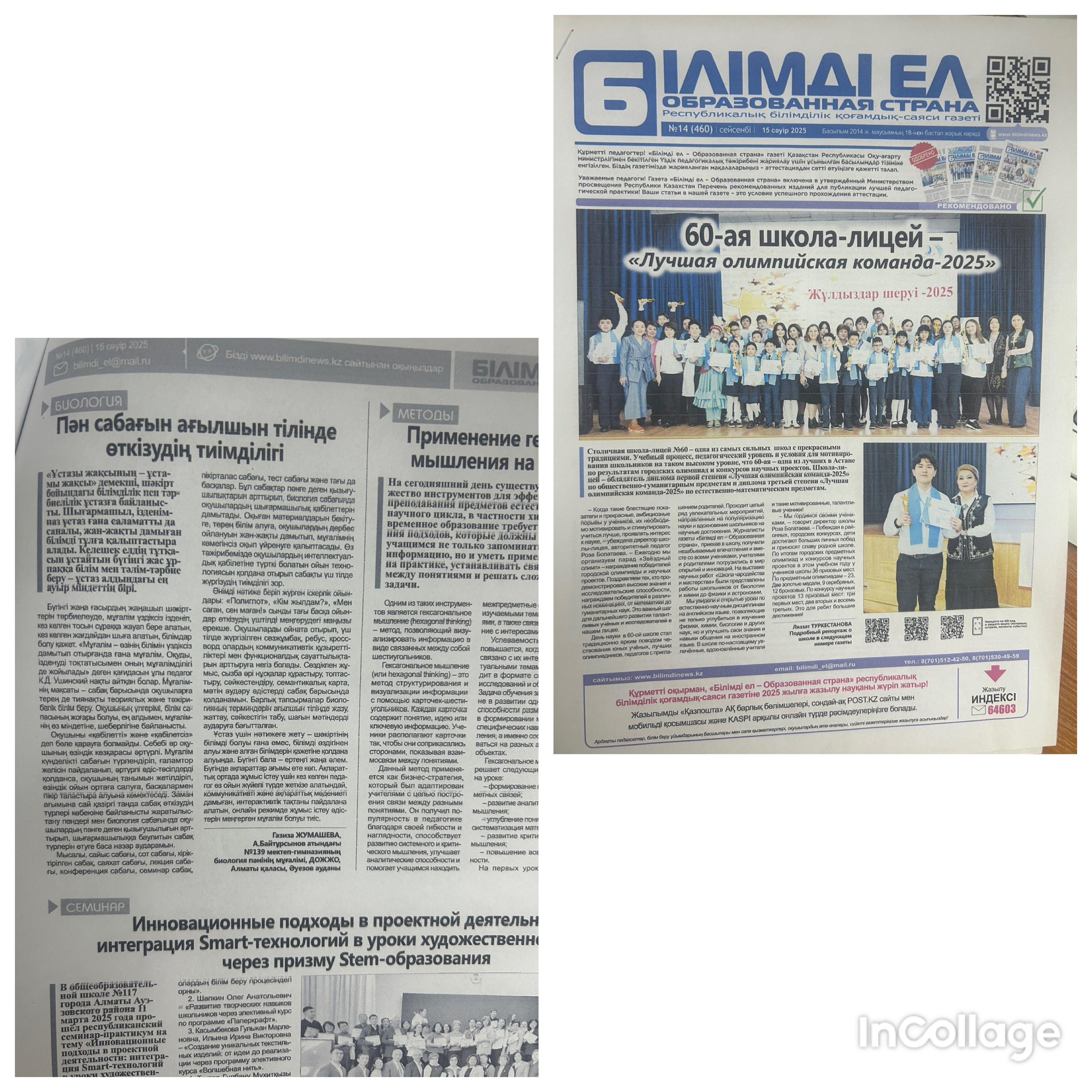 15 апрель 2025 0 1 2 3 4 5 "БІЛІМДІ ЕЛ" ГАЗЕТІ "Білімді ел" газетіне биология пәнінің мұғалімі,ДОЖЖО Газиза Жумашева "Пән сабағын ағылшын тілінде өткізудің тиімділігі" атты мақаласы жарық көрді. Осы беттің QR-коды:QR-код этой страницы: