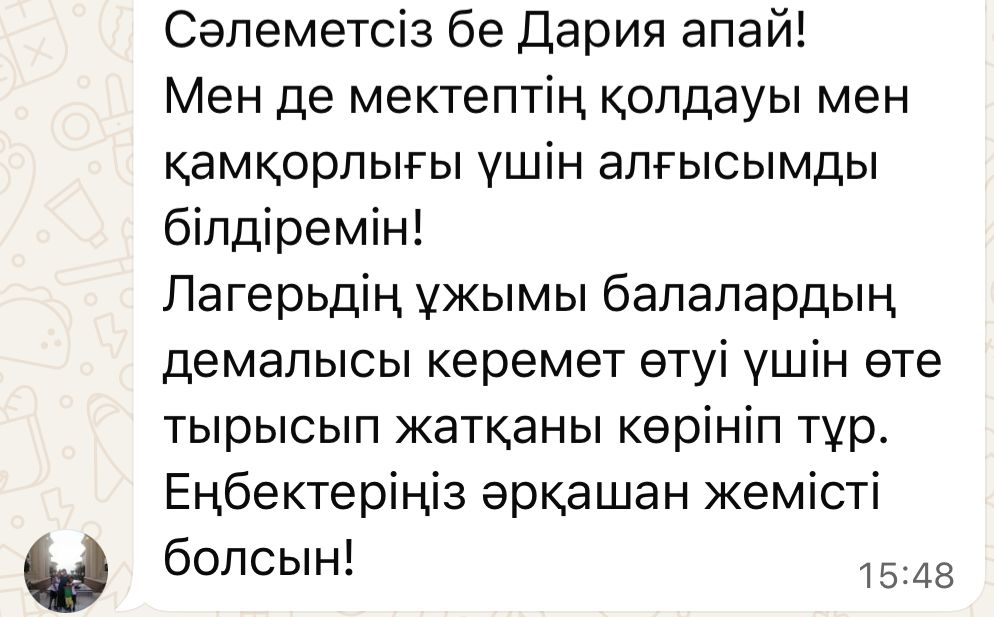 139 мектеп » Біз туралы » Аудандық білім бөлімінің қолдауымен, 07 - 16 тамыз аралығында "Арман Дала" жазғы сыртқы демалыс лагері балаларға қуанышты сезімге бөленіп, бақытты балалық шақтың ерекше дәмін тата білді. Ата - аналар тарапынан да ерекше лебіз тілектер айтылды.