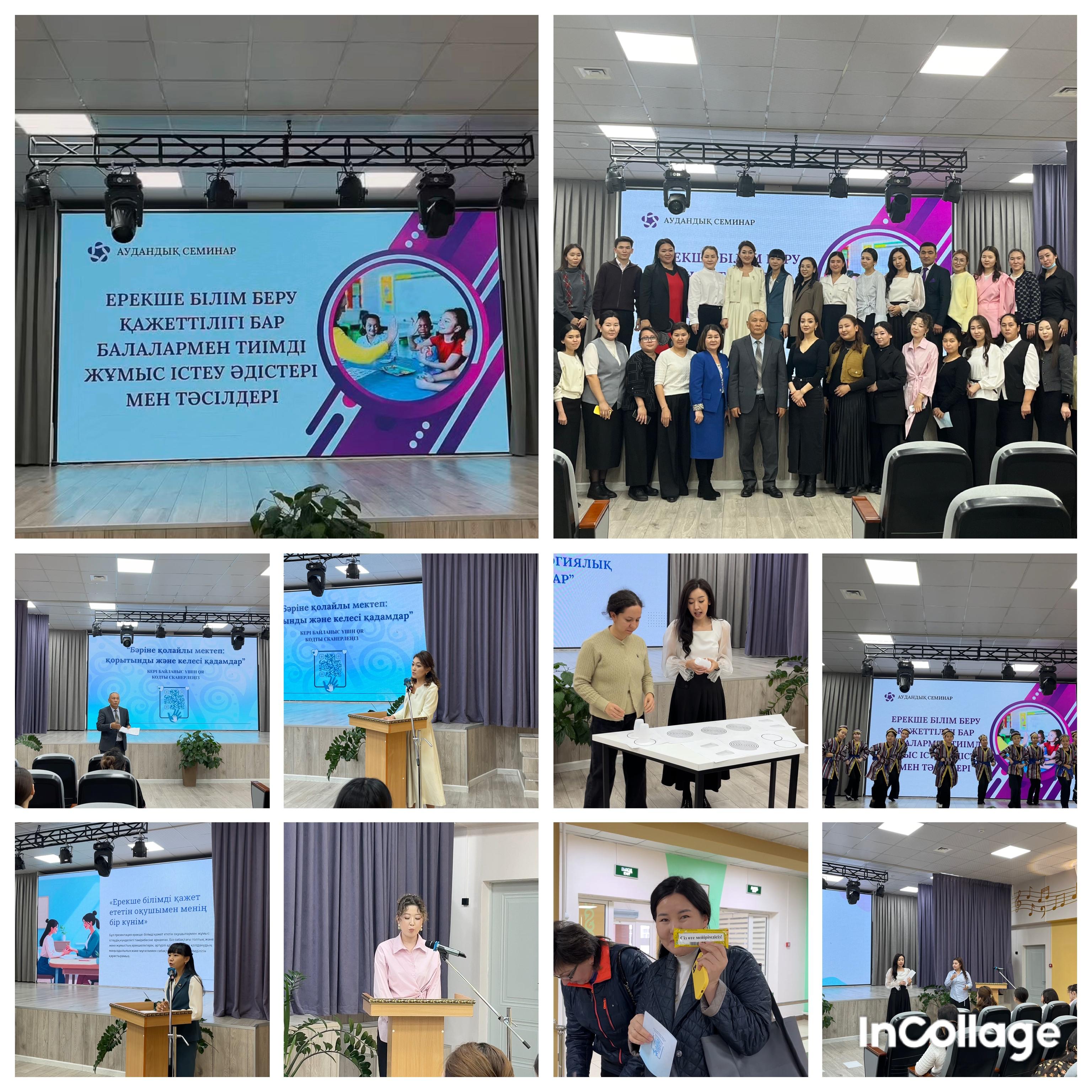Инклюзивті білім беруді дамыту мақсатында мектебімізде аудандық «Ерекше білім беру қажеттілігі бар балалармен тиімді жұмыс істеу әдістері мен тәсілдері» тақырыбында семинар өтті.Іс-шара барысында ЕББҚ бар балалармен жұмыстың өзекті мәселелері талқыланып, тиімді практикалық әдістер көрсетілді. Мұғалімдер оқыту процесін бейімдеу, жеке білім беру траекторияларын құру, қолдау шараларын ұйымдастыру және тиімді коммуникация тәсілдерін қолдану бағытында құнды ақпарат алды.Әр балаға қолайлы орта қалыптастырып, тең мүмкіндік беру – біздің басты және ортақ мақсатымыз.
