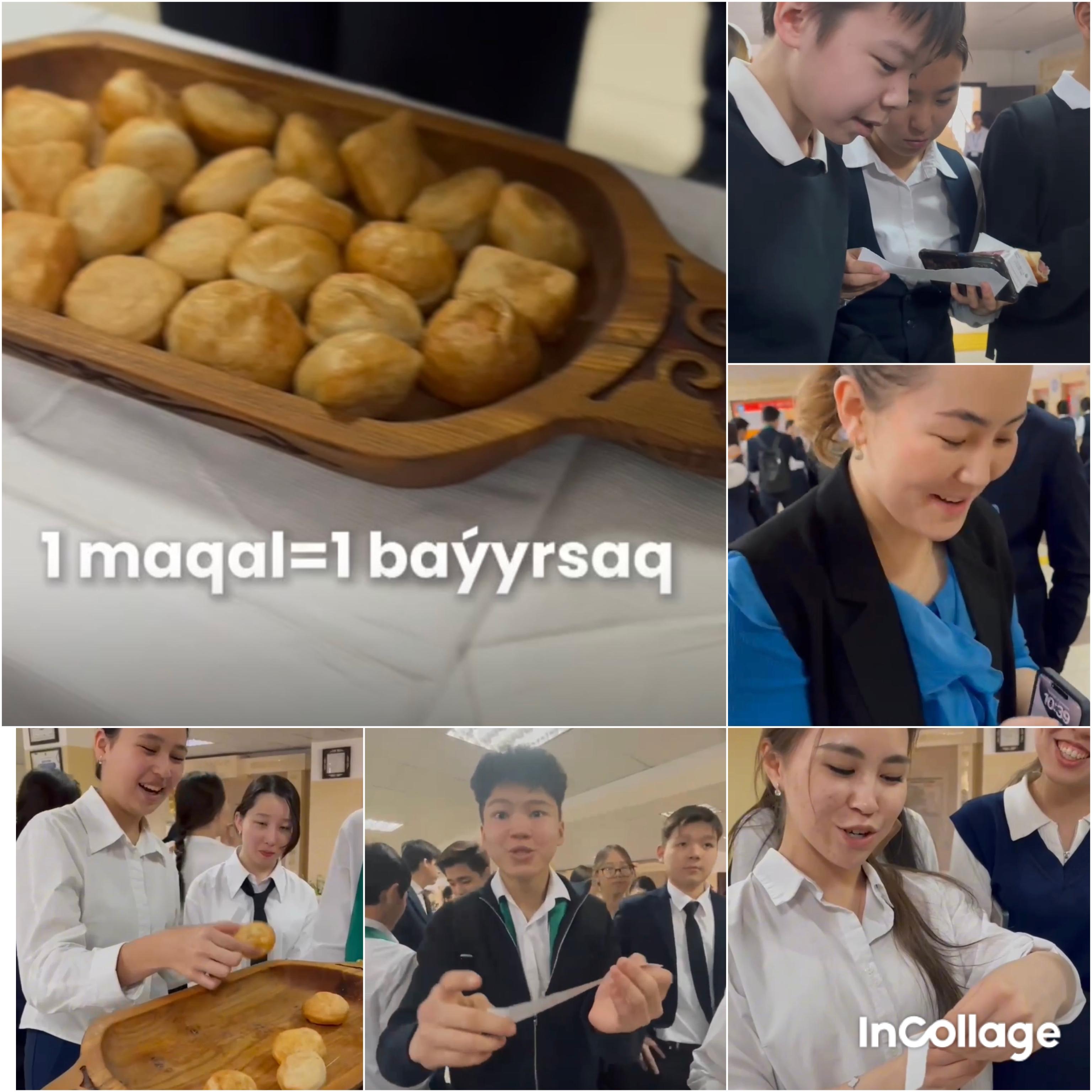 Өзін-өзі басқару ұйымының ұйымдастыруымен “Бір бауырсақ-бір мақал”танымдық айдары өтті. Мақсаты:Оқушылардың мақал - мәтел туралы білім, білігін тереңдету, салыстыру, ажырата білу дағдылары мен оқу, талдау машықтарын қалыптастыру, мағынасын түсіне білуге үйрету, мақал - мәтел тіліміздегі сөздің көркі екенін ұғындыру.