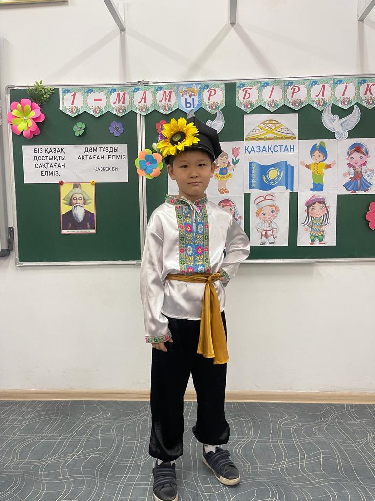 1 мамыр - Қазақстан халықтарының бірлігі күні қарсаңында 1"Б" сыныбында "Бірлігіміз жарасқан елміз" тақырыбында ашық сынып сағаты өтті. Сынып сағатының негізгі мақсаты ынтымақтастыққа,татулыққа, достыққа, өз Отанын сүюге, қорғауға тәрбиелеу, біздің елімізде тұрып жатқан басқа да халықтардың озық мәдениетін, өзіндік үлгі - өнегесін оқушылардың бойына сіңіру болды. Сынып жетекшісі: Найманханова Салтанат