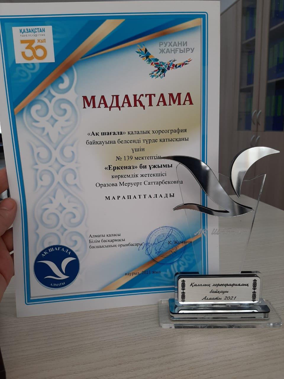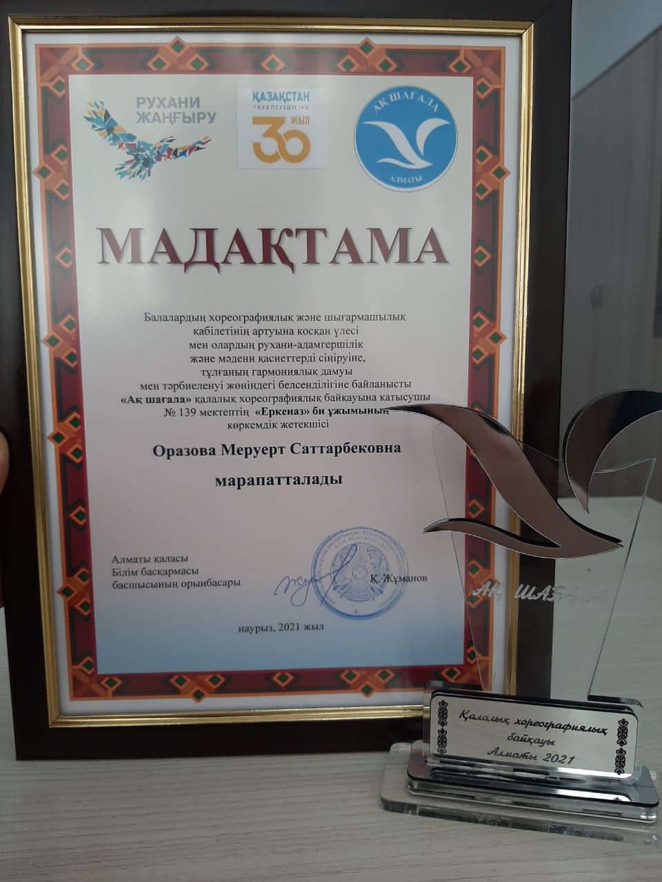 08 май 2021 0 1 2 3 4 5 Би үйірме жетістігі "Ақ шағала" қалалық хореграфия байқауына белсенді түрде қатысқаны үшін "Еркеназ" би тобының жетекшісі Оразова Меруерт мадақтамамен марапатталды. Осы беттің QR-коды:QR-код этой страницы: