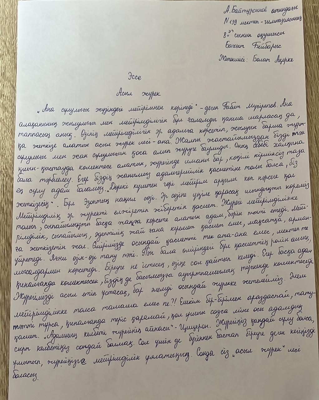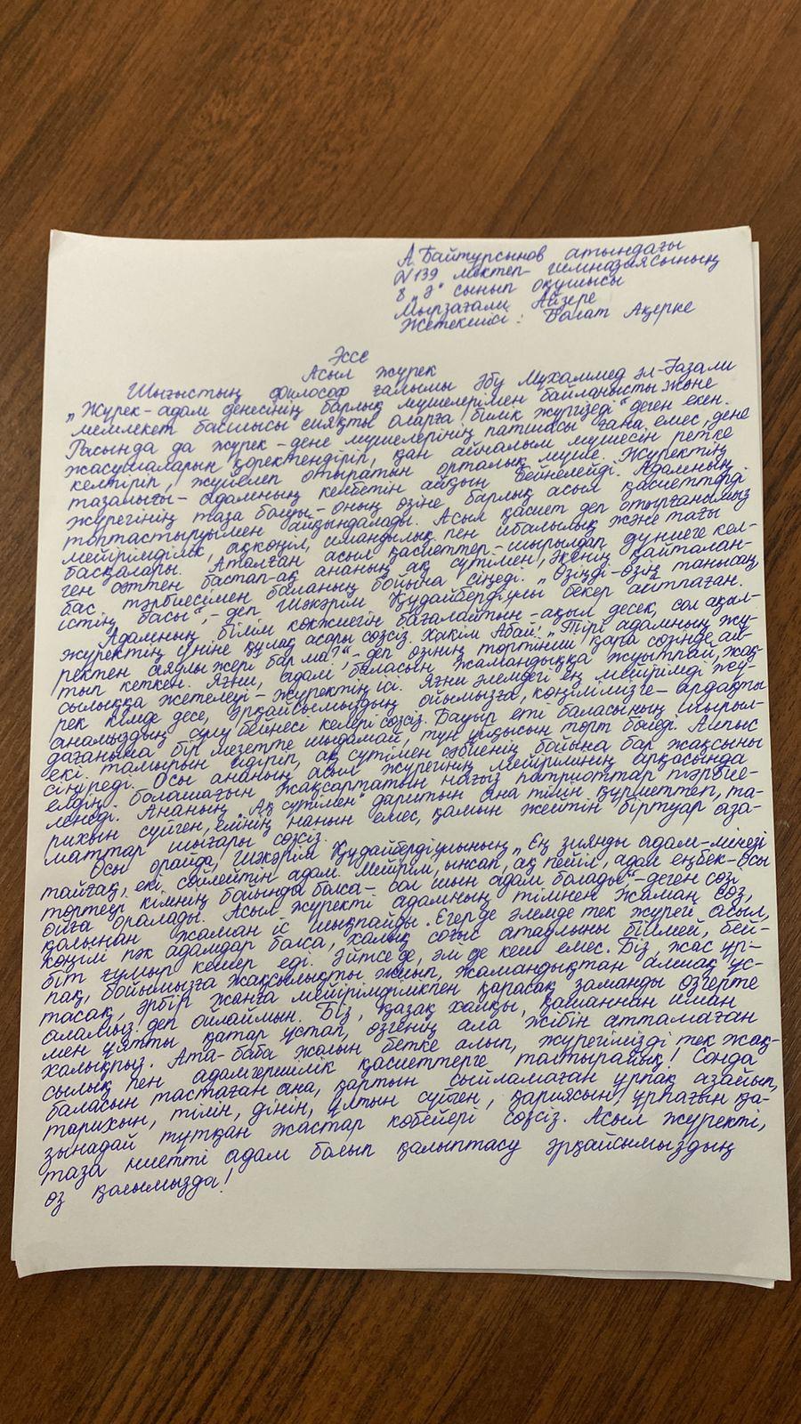 05 февраль 2022 0 1 2 3 4 5 "Асыл жүрек" эссе байқауы "Асыл жүрек" тақырыбында өткен аудандық эссе байқауына 7-10 оқушылары қатысып, 8 "Ә" сынып оқушысы Мырзағали Айзере қалаға жолдама алды. Жетекшісі А.Болат Осы беттің QR-коды:QR-код этой страницы: