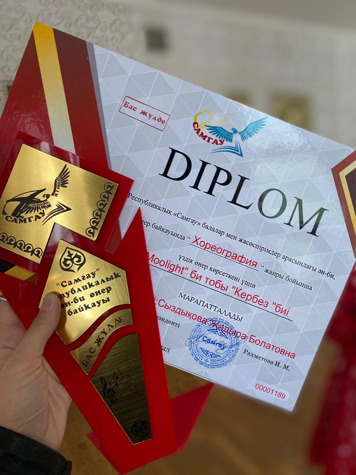 Республикалық "Самғау" балалар мен жасөспірімдер ән-би өнер байқауына Хореография жанры бойынша мектеп-гимназиямыздың "Moolight" би тобы қатысып бас жүлде иеленді. Жетістіктерің көп болсын, тек биіктен көрініп мектеп-гимназиямыздың атын асқақтата беріңіздер!