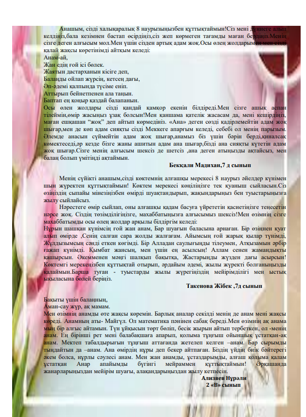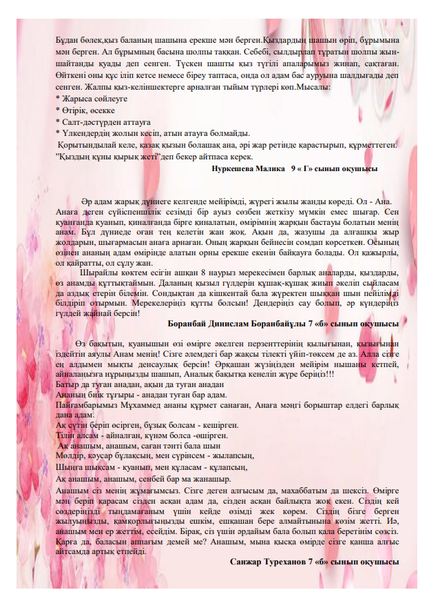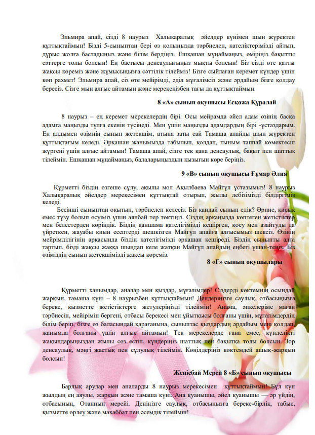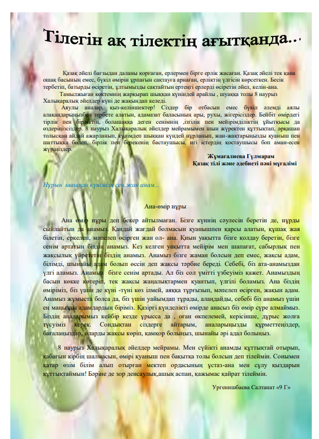 1 Наурыз - "Алғыс айту күні" сынып сағаты