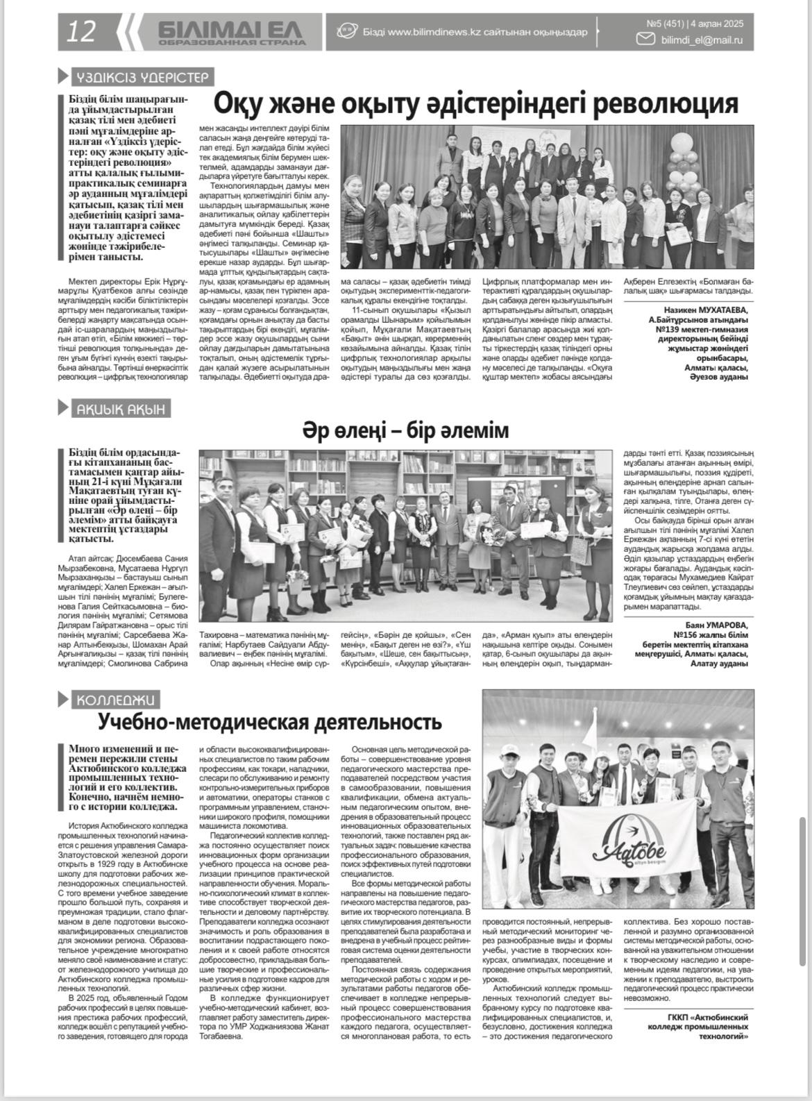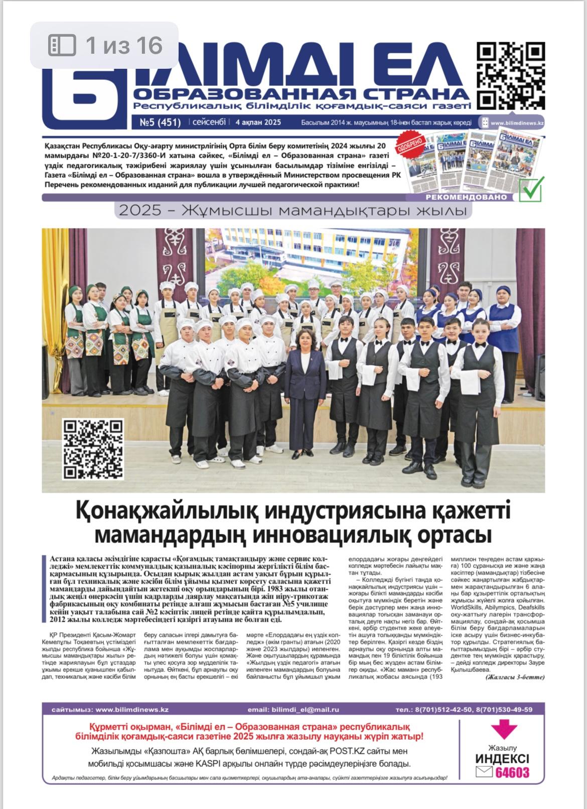 06 февраль 2025 0 1 2 3 4 5 "БІЛІМДІ ЕЛ" Республикалық білімділік қоғамдық-саяси газеті ДБЖЖО Мухатаева Назикен Нұрланқызының "Оқу және оқыту әдістеріндегі революция" атты мақаласы БІЛІМДІ ЕЛ Республикалық білімділік қоғамдық-саяси газетінде жарық көрді. Осы беттің QR-коды:QR-код этой страницы: