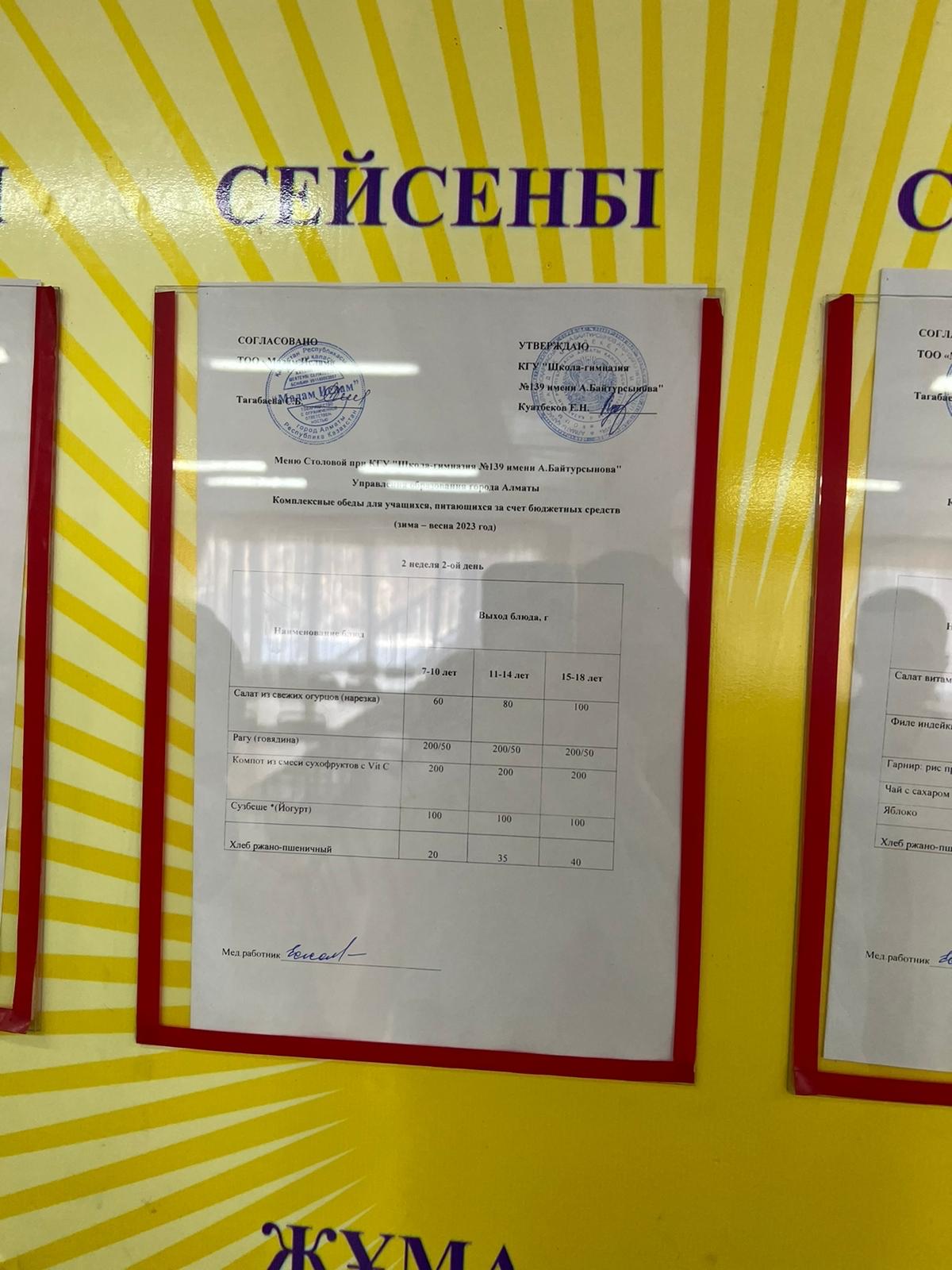 139 мектеп » Тамақтандыру » Тамақтандырудың сапалық мониторингі » Брокераждық комиссия мүшелері және ата-аналар Кенжебаева Айгерим, Жылангузова Мөлдір кезекті асхананың санитарлық жағдайға сәйкес келуін, тазалығын,тамақтың құнарлылығын,күнделікті мәзірге сәйкес келуіне тексеру жүргізілді.Нәтижесі қалыпты деңгейде.